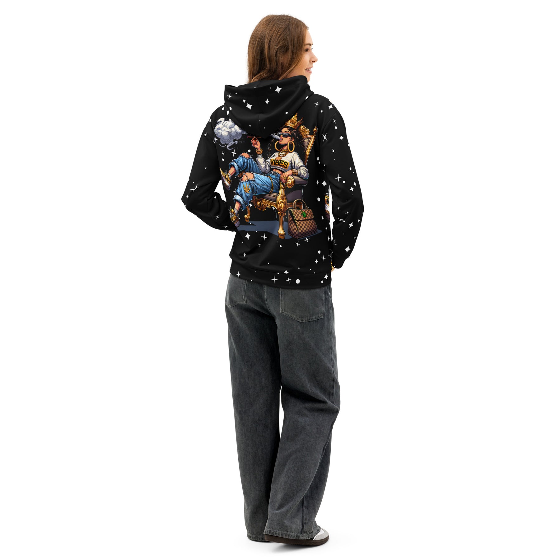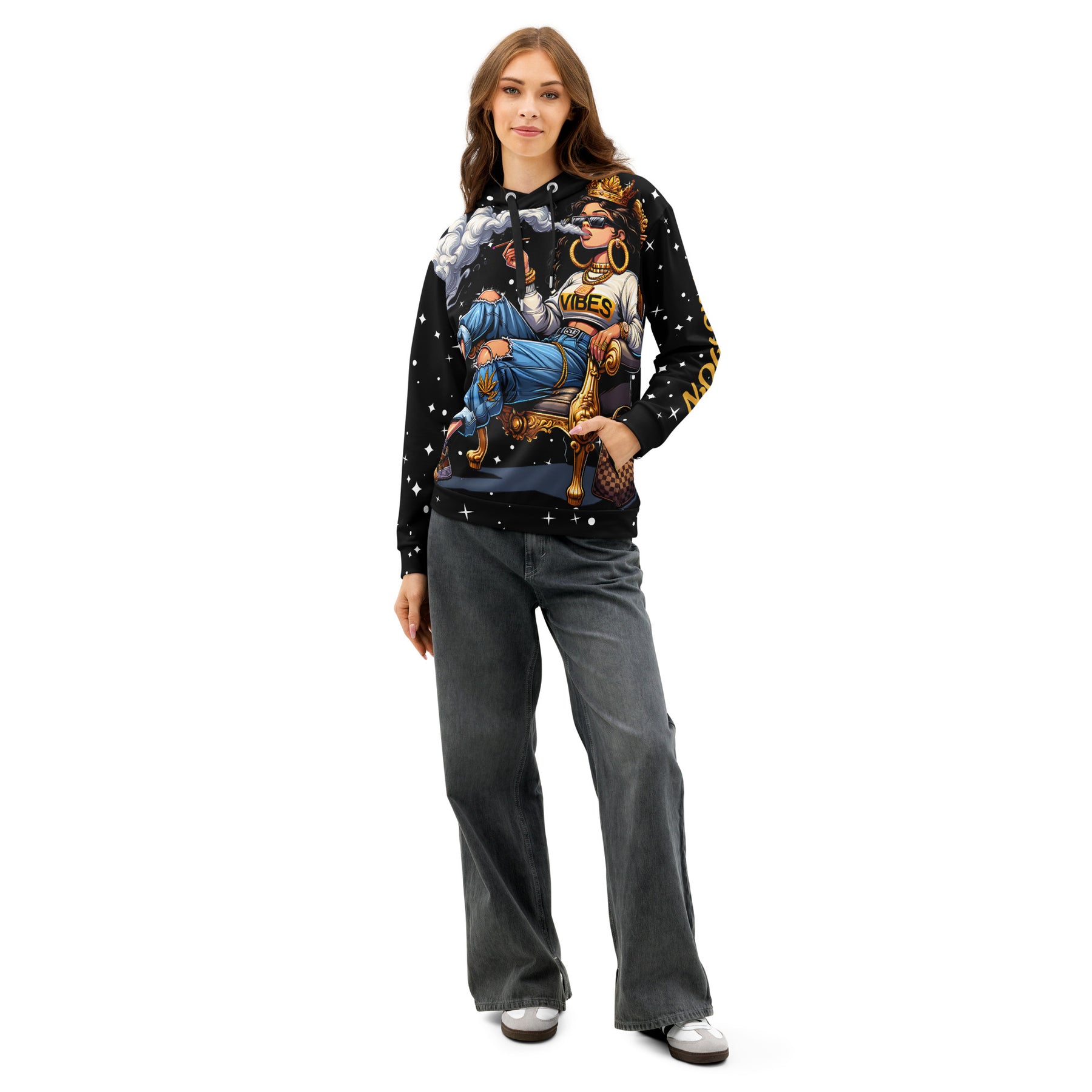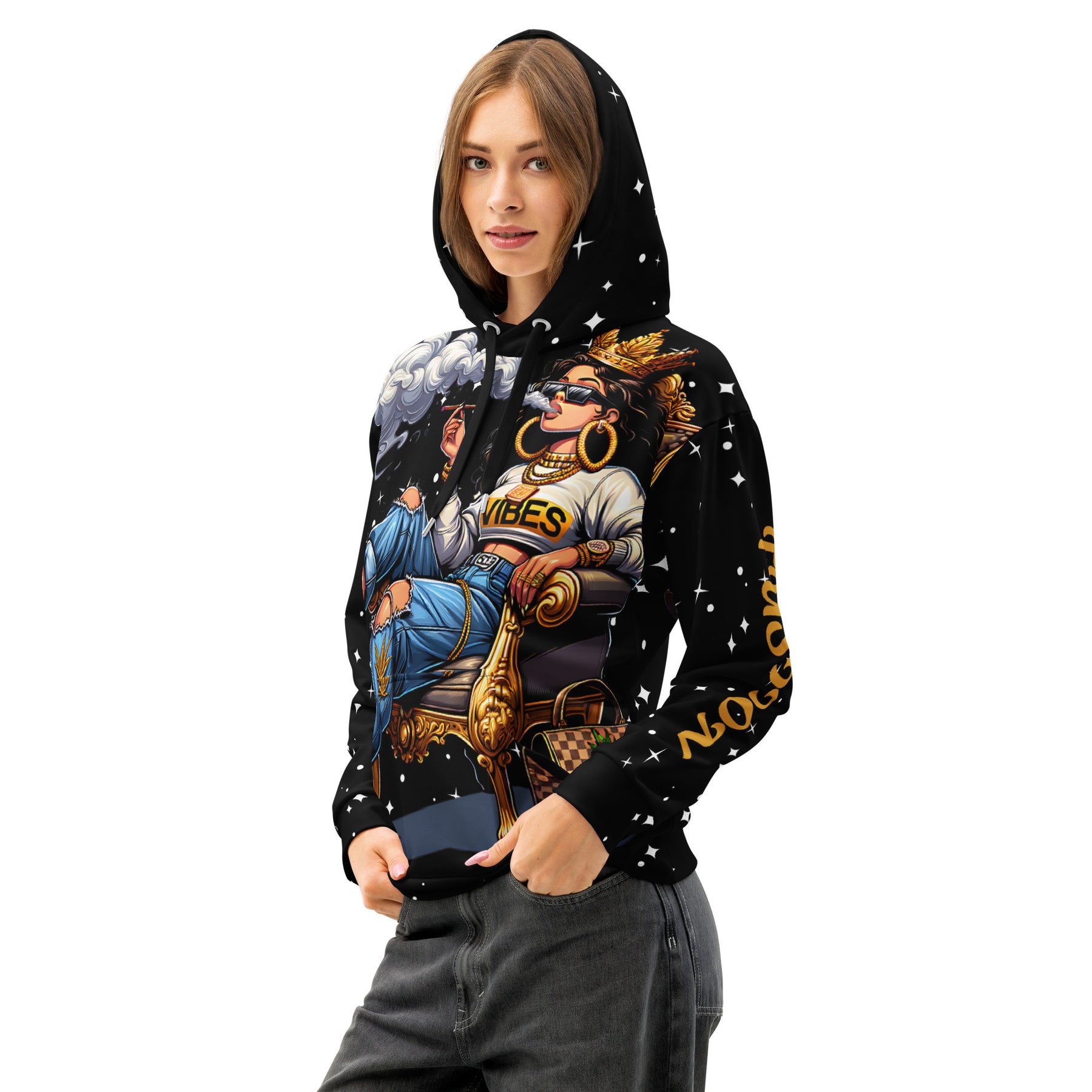 Own the night with the Midnight Rebel Hoodie — a statement piece for those who live on their own terms. Featuring a striking graphic of a woman lounging in a chair, smoke curling around her, this hoodie exudes confidence, mystery, and unapologetic style.